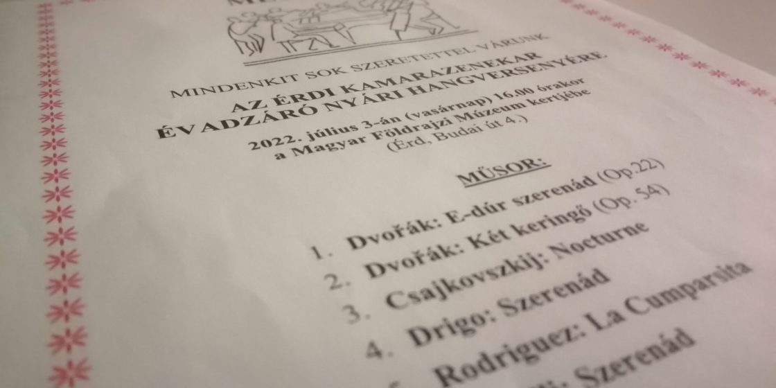 Mások mellett Antonín Dvořák Két keringője, Pjotr Iljics Csajkovszkij Nocturne című darabja vagy épp Enrico Toselli Szerenádja is elhangzik majd az Érdi Kamarazenekar vasárnapi koncertjén, amit a Magyar Földrajzi Múzeum kertjében rendeznek meg 16 órai kezdettel.