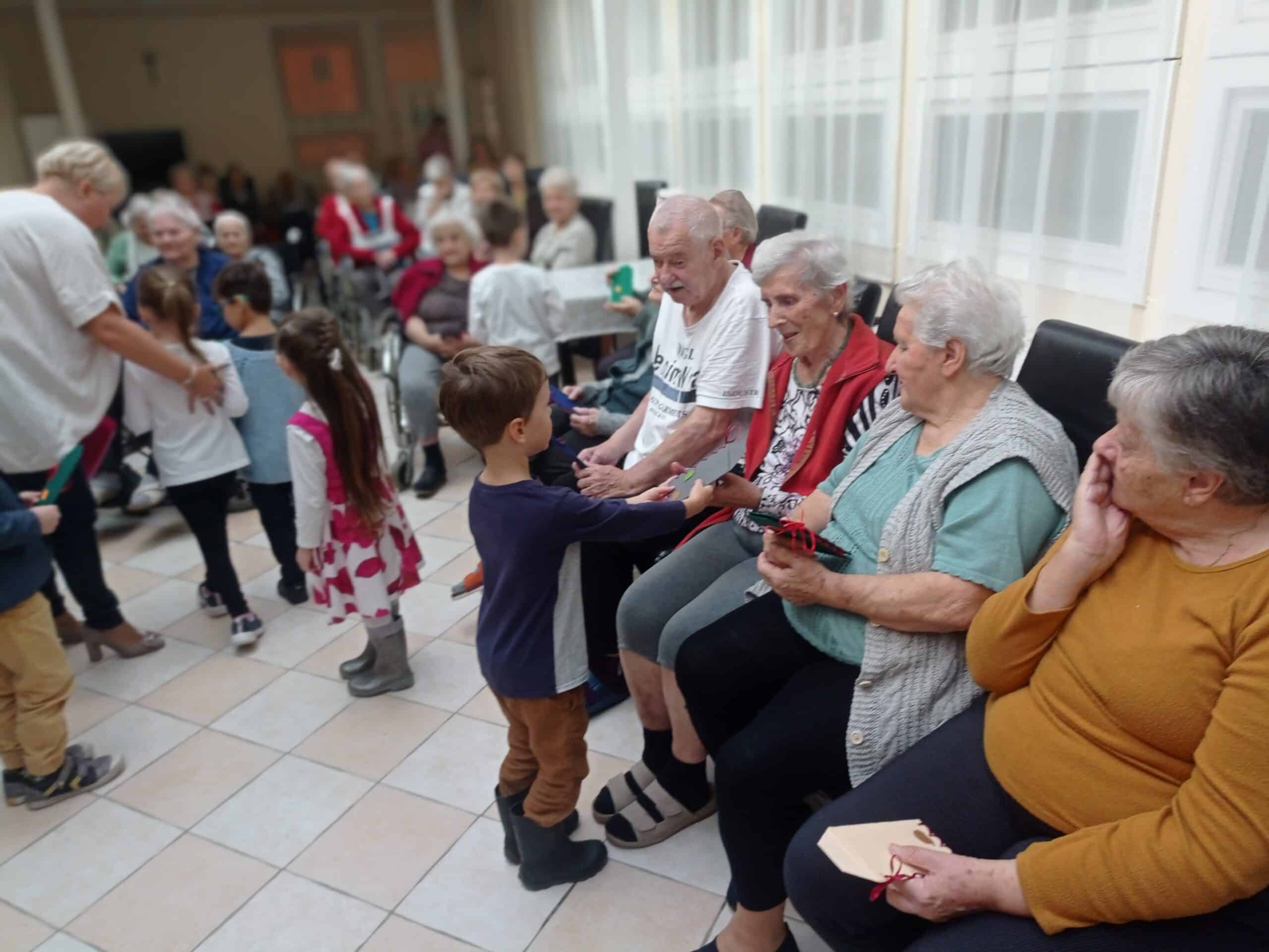 A kicsik dallal, verssel, ajándékkal köszöntötték a szépkorúakat az idősek világnapján.