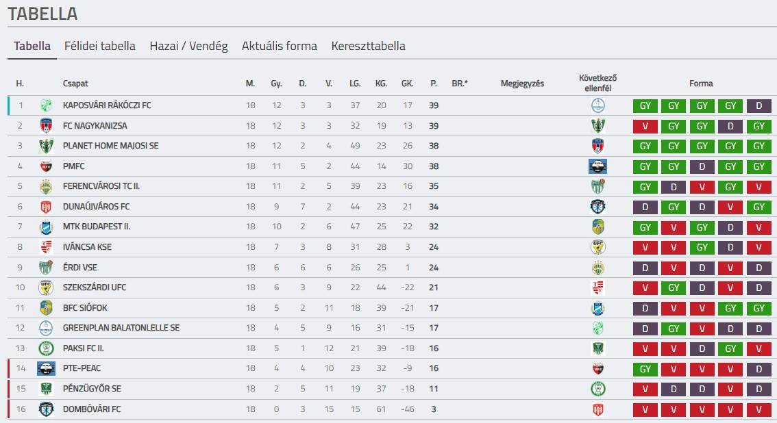Ezzel a döntetlennel az Érdi VSE 18 bajnoki fordulót követően 24 ponttal a tabella kilencedik helyén áll, ugyanannyit gyűjtött, mint a nyolcadik pozícióban tanyázó Iváncsa KSE.