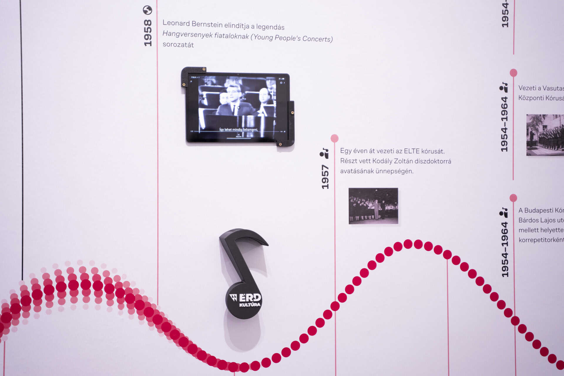 Van pár vitrin Lukin László személyes tárgyaival, az általa szerkesztett zenei tankönyvekkel, de még azoknak sincs halott múzeum szaga. Ebben a térben minden interaktív. Minden húr, gitárpengető, a morze, a karmesteri pálca, a pianínó billentyűje és persze a sok-sok tablet kijelzője mind azt kiabálja, érints meg, fedezz fel, játssz velem.