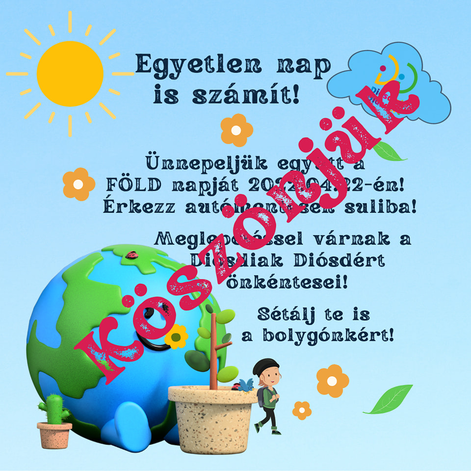 A Föld napja alkalmából pénteken közel 600 diák érkezett a diósdi iskolába autómentesen. A Diósdiak Diósdért Egyesület szervezésében  4 ponton osztottak önkéntesek reggelit a gyalog, rollerrel vagy bringával érkezőknek.