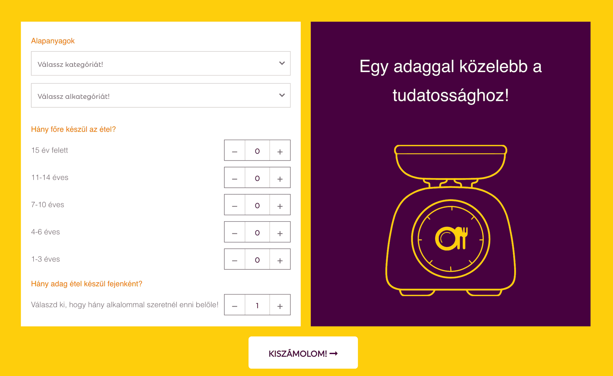 Ebben pedig a Maradék nélkül program adagkalkulátora is segítséget nyújt. A kalkulátor iránytűként mutatja a korcsoportok szerinti reális alapanyag mennyiséget. Ezzel megkönnyíti a menü és a bevásárlólista összeállítását, amivel elkerülhető a felesleges élelmiszervásárlás és főzés.