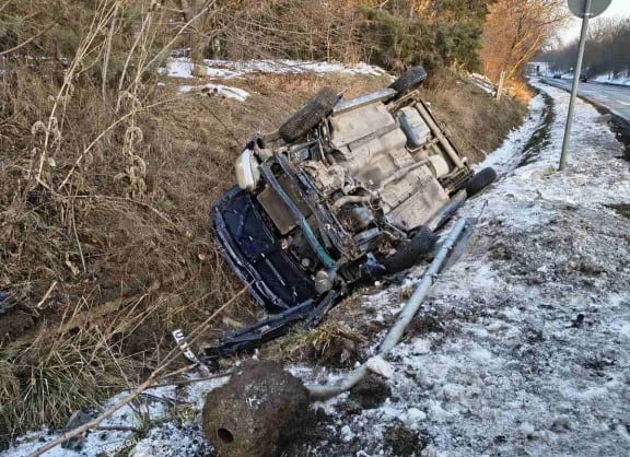Irányíthatatlanná vált és az árokban kötött ki az autó