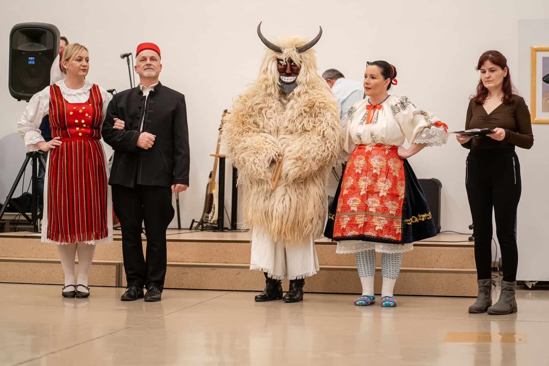 A táncház elején röviden ismertették a farsangi népszokásokat, bemutatták a dalmát és a sokác viseletet is.