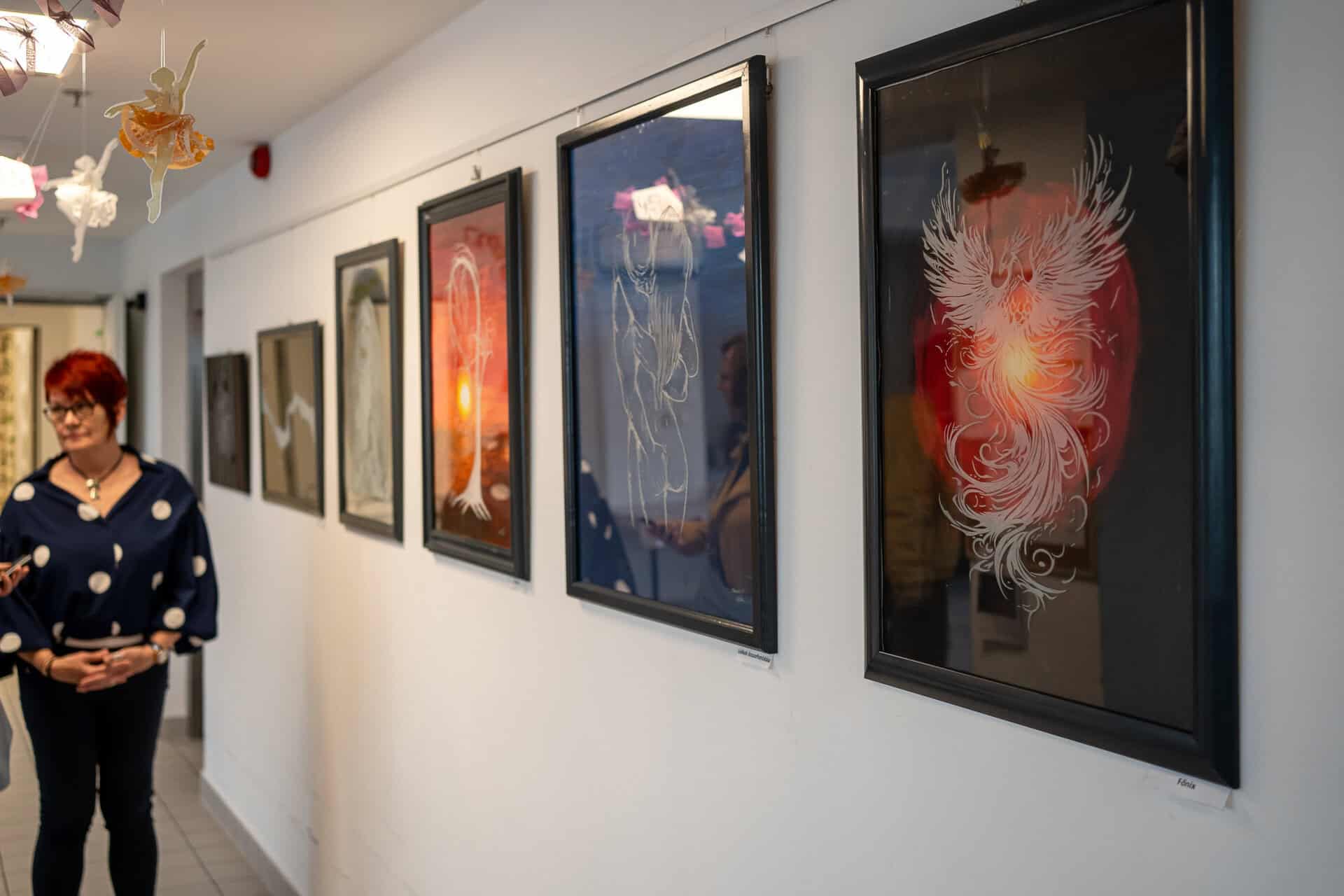 Az új kiállítás merőben más, mint a parkvárosi volt, ugyanis az utóbbi fél-egy évben teljesen új, egyedi stílust alakított ki: üvegre gravíroz, a hátteret pedig akrillal festi meg.