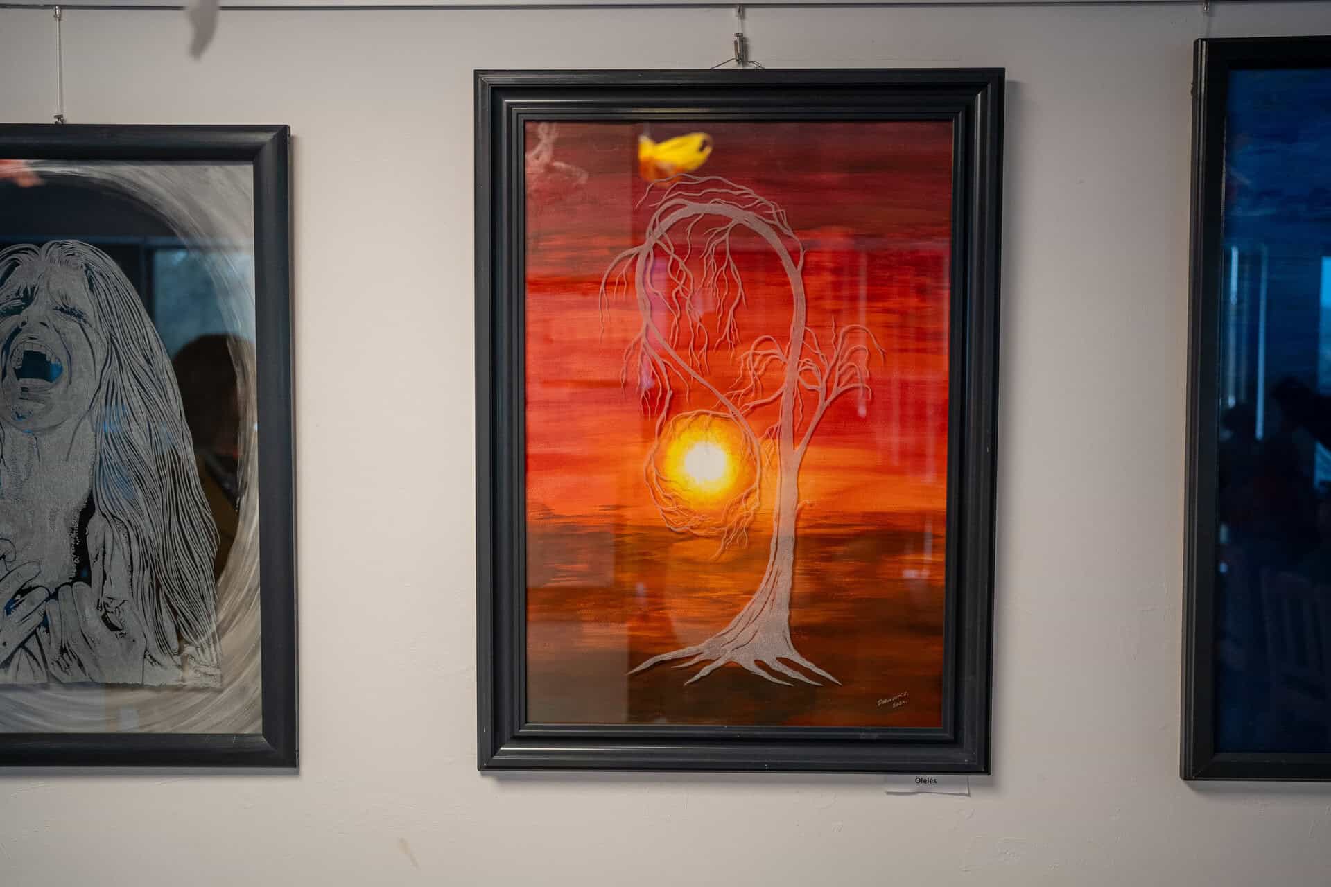 Ha pályázatokon nem is indulhat, képei nagyon sikeresek. Ahogy Harmat Ákos alpolgármester megnyitón fogalmazott: „Ez a két világ, karc és az ecset, egész szokatlan módon él meg egymás mellett.”
