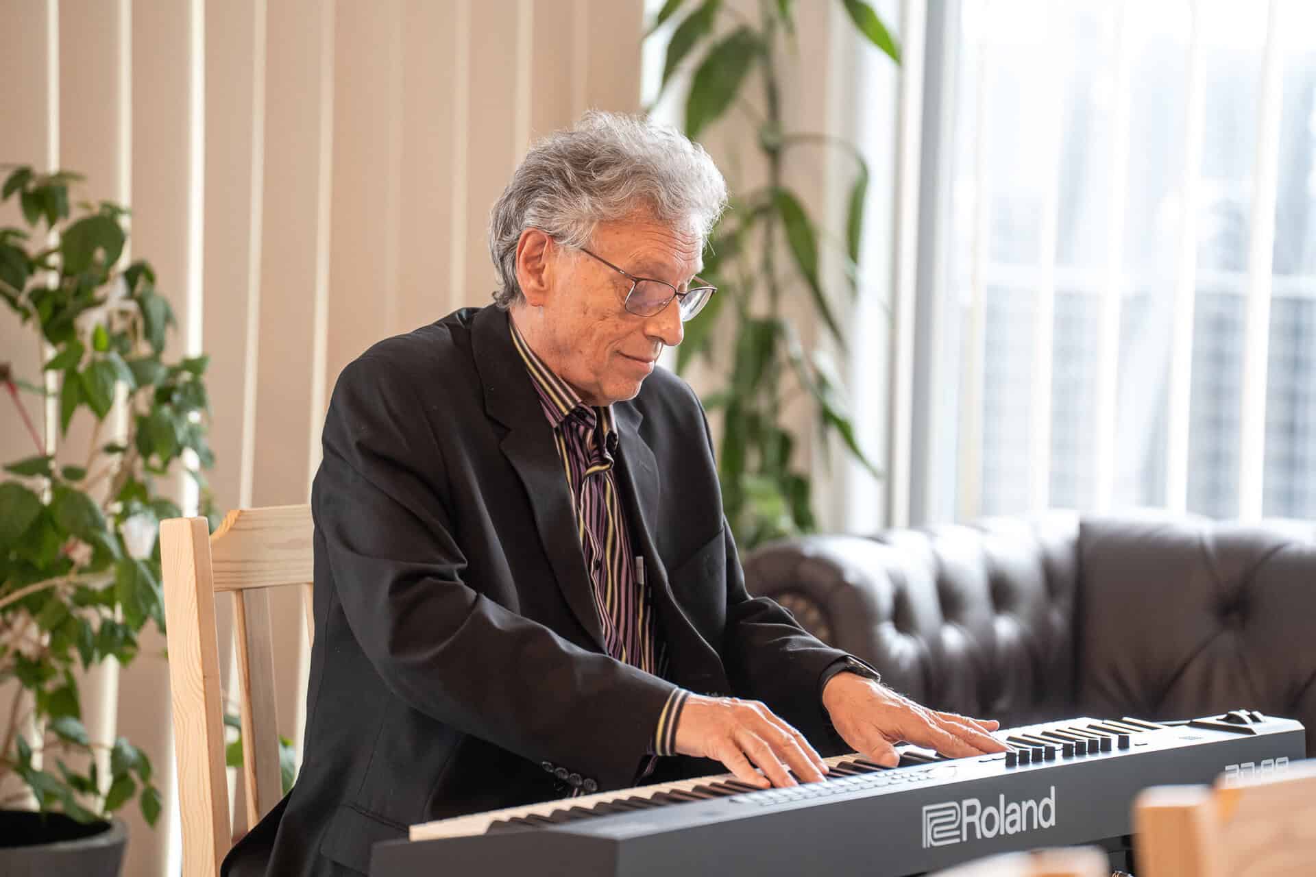 A kiállításmegnyitón Falus Gábor zongorázott